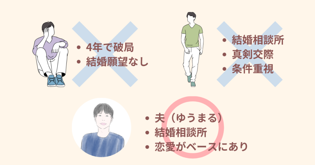 私は最終的に効率的な結婚相談所で出会った夫と結婚しましたが、「好きになれる人と出会えた」ことが一番大きかったです。