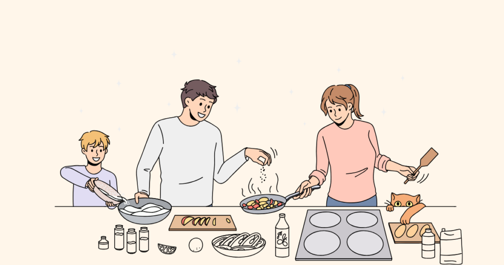 いまは仕事を辞めた私が家事育児メインですが、平日も子どもの習いごとのお迎えや、ゴミの分別、夜の食器洗いなど積極的に家事に参加してくれます。