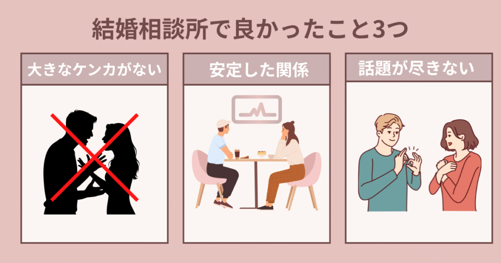 婚活において、結婚相談所を利用してよかったと思えることについてです。