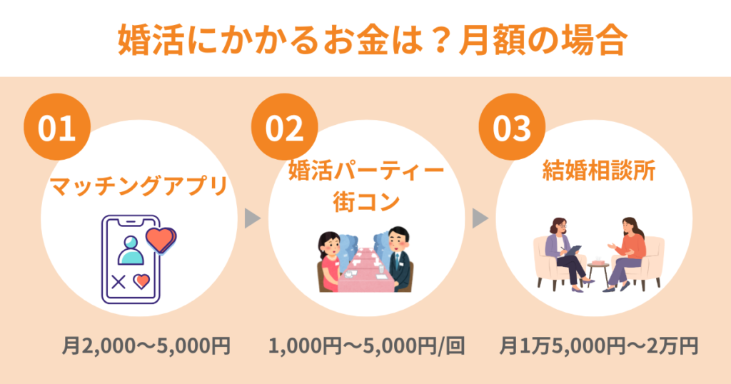 結婚相談所:月1万5,000円~3万程度