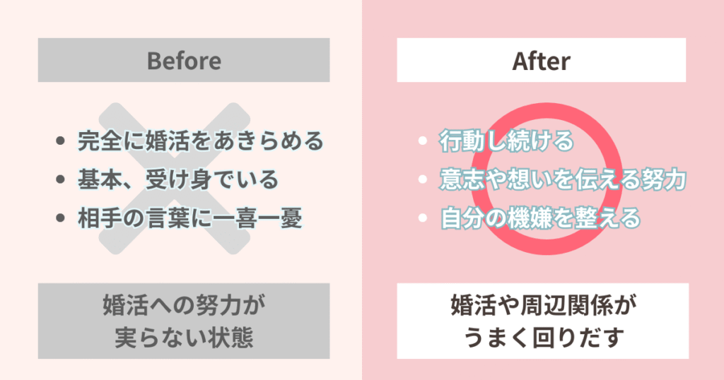 結婚相談所では「選ばれない → 選ぶ側」の視点で活動できていました。
