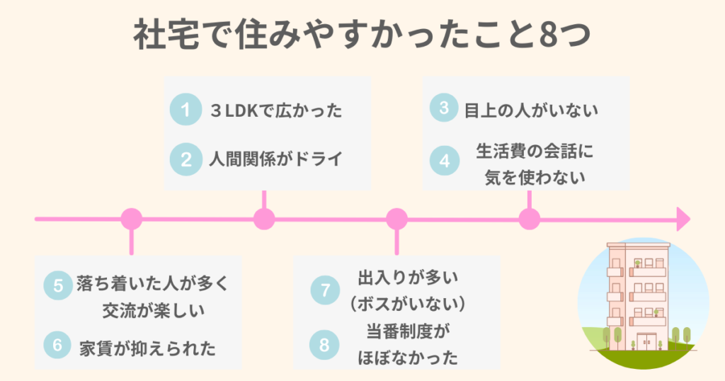 色々と挙げましたが、社宅生活は私にとって快適でした。